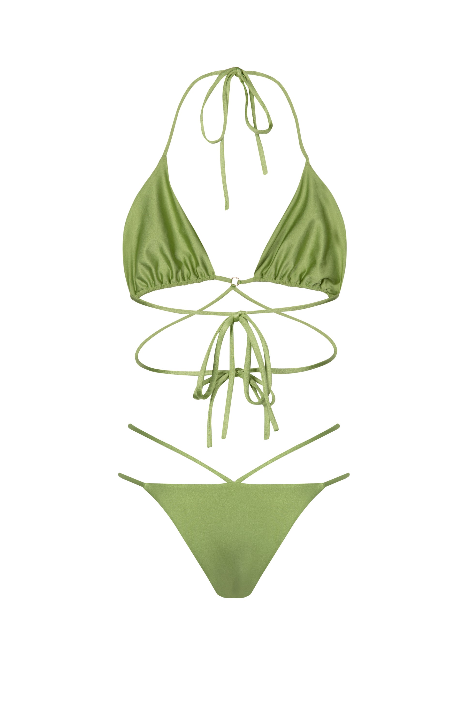 There’s no chicer way to show off your sun-kissed tan than with this bikini. Our contemporary take on the classic triangle style, the top is made from smooth Italian Lycra and features multiple straps for a striking wrap-style design. The strappy detail of the matching bottom adds a sleek finishing touch. Pair it with our kimono and oversized sunglasses for a glamorous poolside look.